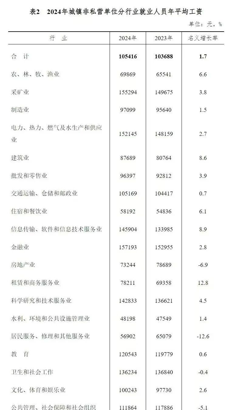 5、2024年度城镇非私营单位分行业就业人员年平均工资 :