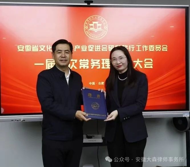 11月21日,安徽大森律师事务所的刘芳律师被正式聘请为安徽省文化和旅游产业促进会研学旅行工作委员会法律部部长,为文化和旅游产业注入了新的法治力量。